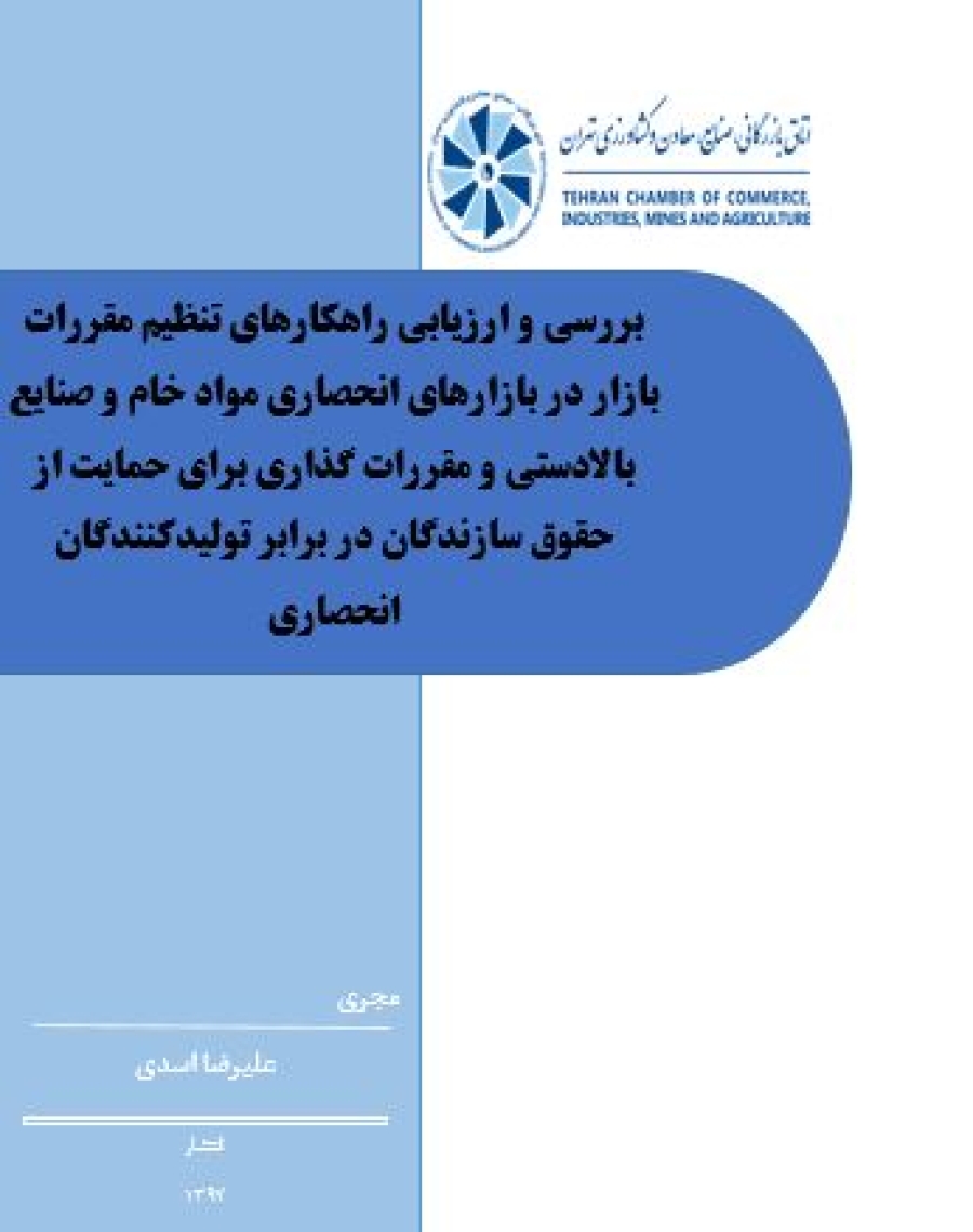 بررسی و ارزیابی راهکارهای تنظیم مقررات بازار در بازارهای انحصاری مواد خام و صنایع بالادستی و مقررات گذاری برای حمایت از حقوق سازندگان در برابر تولیدکنندگان انحصاری