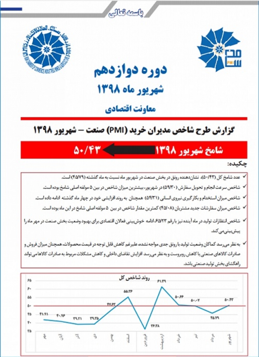 طرح شاخص مدیران خرید( PMI)- شهریور ۱۳۹۸