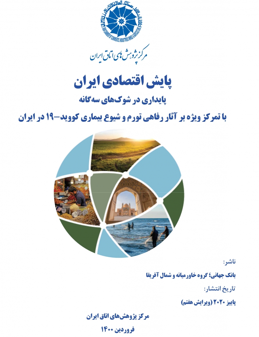 اقتصاد ایران به دلیل شوک ناشی از سه عامل تحریمها، بحران در بازار نفت و کووید-19 وارد سومین سال پیاپی رکود اقتصادی شده است. تولید ناخالص داخلی ایران در سال 1398 به دلیل پایان یافتن معافیتهای تحریم آمریکا بر صادرات نفت این کشور، به میزان ۶.۸ درصد کاهش یافت. شیوع کووید-19 و بحران متعاقب آن در بازار نفت نیز بر تولید ناخالص داخلی در سه ماهه آخر سال تأثیر گذاشت، چرا که تولید نفت ایران در این مدت به کمترین مقدار در سه دهه اخیر یعنی 2 میلیون بشکه در روز رسید. در سال 1398، علیرغم اعمال تحریمهای ایالات متحده بر دیگر صنایع کلیدی، تولید ناخالص داخلی بدون نفت، در اثر رشد بخشهای کشاورزی و صنعت، به میزان ۱.۱ درصد رشد یافت. در سمت تقاضا، انقباض تولید ناخالص داخلی در همه بخشها گسترده بود و رشد تمامی بخشها منفی بود. با کاهش محدودیتهای اعمالی ناشی از کووید-19 و همچنین پایدار شدن وضعیت بیماری در اوایل اردیبهشت، سرعت کاهش تولید ناخالص داخلی در فصل بهار سال 1399 (فروردین تا خرداد 1399) کمتر شد (۲.۸ درصد). رشد ضعیف اخیر به رکود بلندمدت یک دهه گذشته اضافه شده است. در طول بازه زمانی 1398-1388، مقدار رشد تولید ناخالص داخلی به صورت میانگین سالانه ۰.۱ – درصد بوده و سرانه تولید ناخالص داخلی و درآمد ایران به زیر میانگین منطقه ای سقوط کرده است.