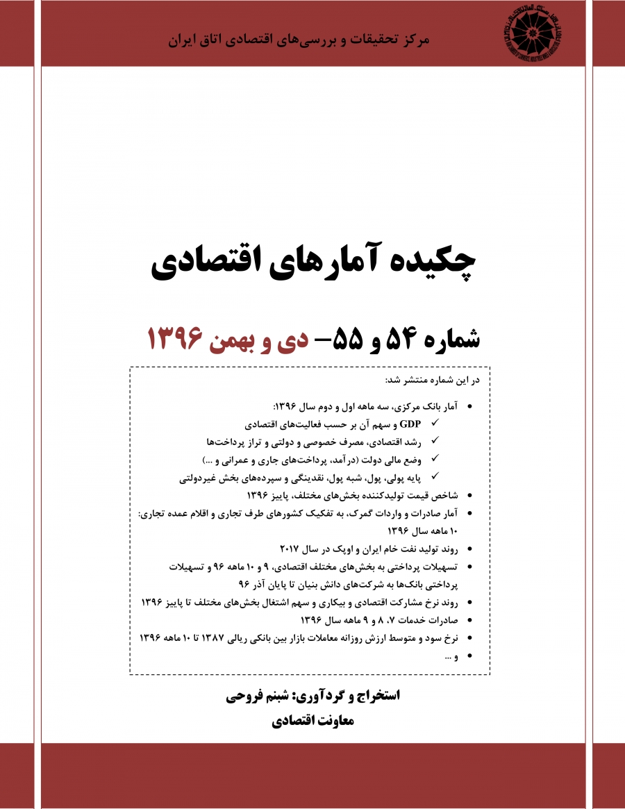 چکیده آمارهای اقتصادی شماره 54 و 55- دی و بهمن 1396