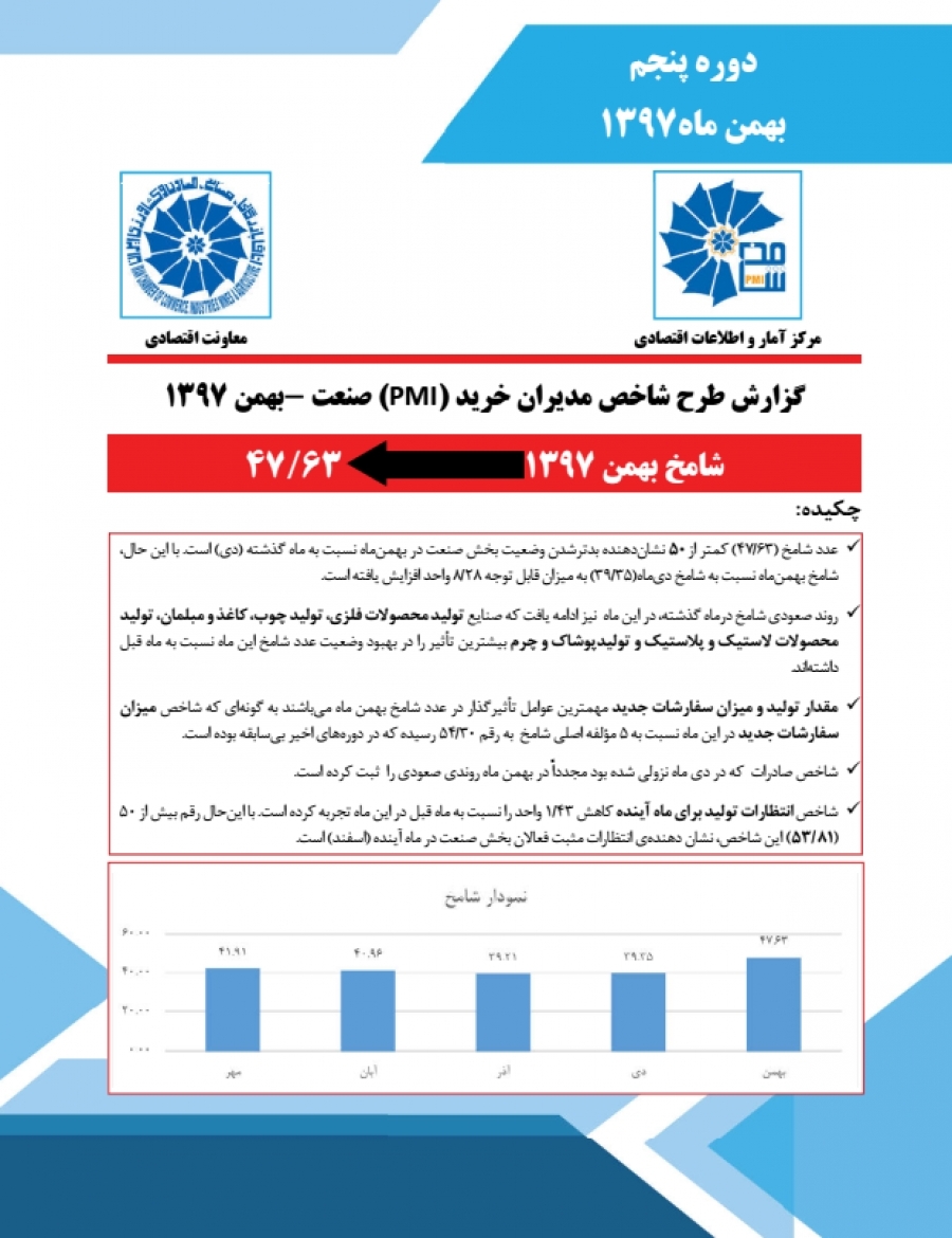 گزارش طرح شاخص مدیران خرید(PMI) صنعت – بهمن ۱۳۹۷